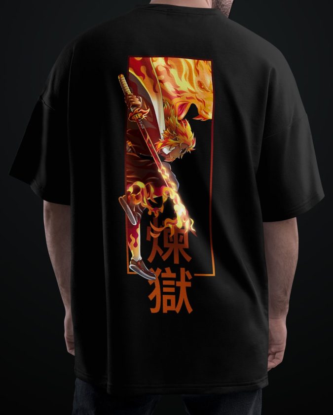 Express your fandom in style with our Premium Anime Oversized T-Shirt, crafted from 100% soft cotton for unmatched comfort and breathability. Designed with high-quality anime-inspired graphics, this tee brings your favorite characters to life with vibrant detail. The relaxed oversized fit offers a trendy streetwear look while ensuring all-day ease. Perfect for casual outings, anime conventions, or daily wear, it pairs effortlessly with jeans, cargos, or joggers. Durable stitching and fade-resistant prints make this anime t-shirt for men a must-have for every anime lover’s wardrobe. Stay cool, comfy, and effortlessly fashionable.Rengoku Flame Hashira Premium Anime Oversized T-Shirt – Avoid Boring 1 Fits