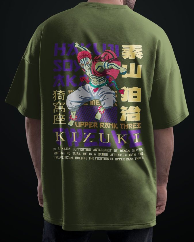 Express your fandom in style with our Premium Anime Oversized T-Shirt, crafted from 100% soft cotton for unmatched comfort and breathability. Designed with high-quality Demon Slayer anime-inspired graphics, this tee brings your favorite characters to life with vibrant detail. The relaxed oversized fit offers a trendy streetwear look while ensuring all-day ease. Perfect for casual outings, anime conventions, or daily wear, it pairs effortlessly with jeans, cargos, or joggers. Durable stitching and fade-resistant prints make this anime t-shirt for men a must-have for every anime lover’s wardrobe. Stay cool, comfy, and effortlessly fashionable.Kizuki Demon Slayer Premium Anime Oversized T-Shirt – Avoid Boring Fits